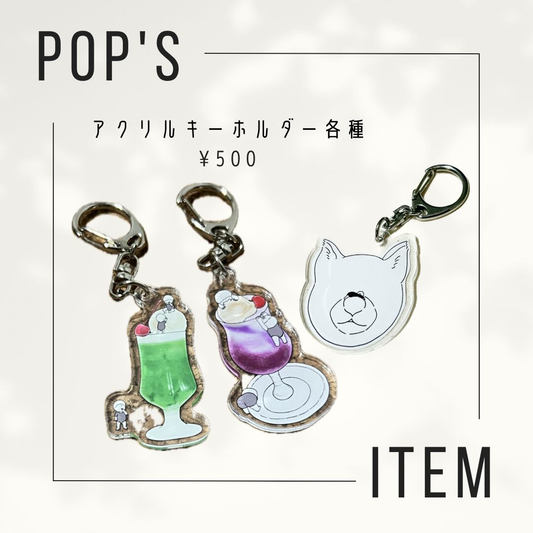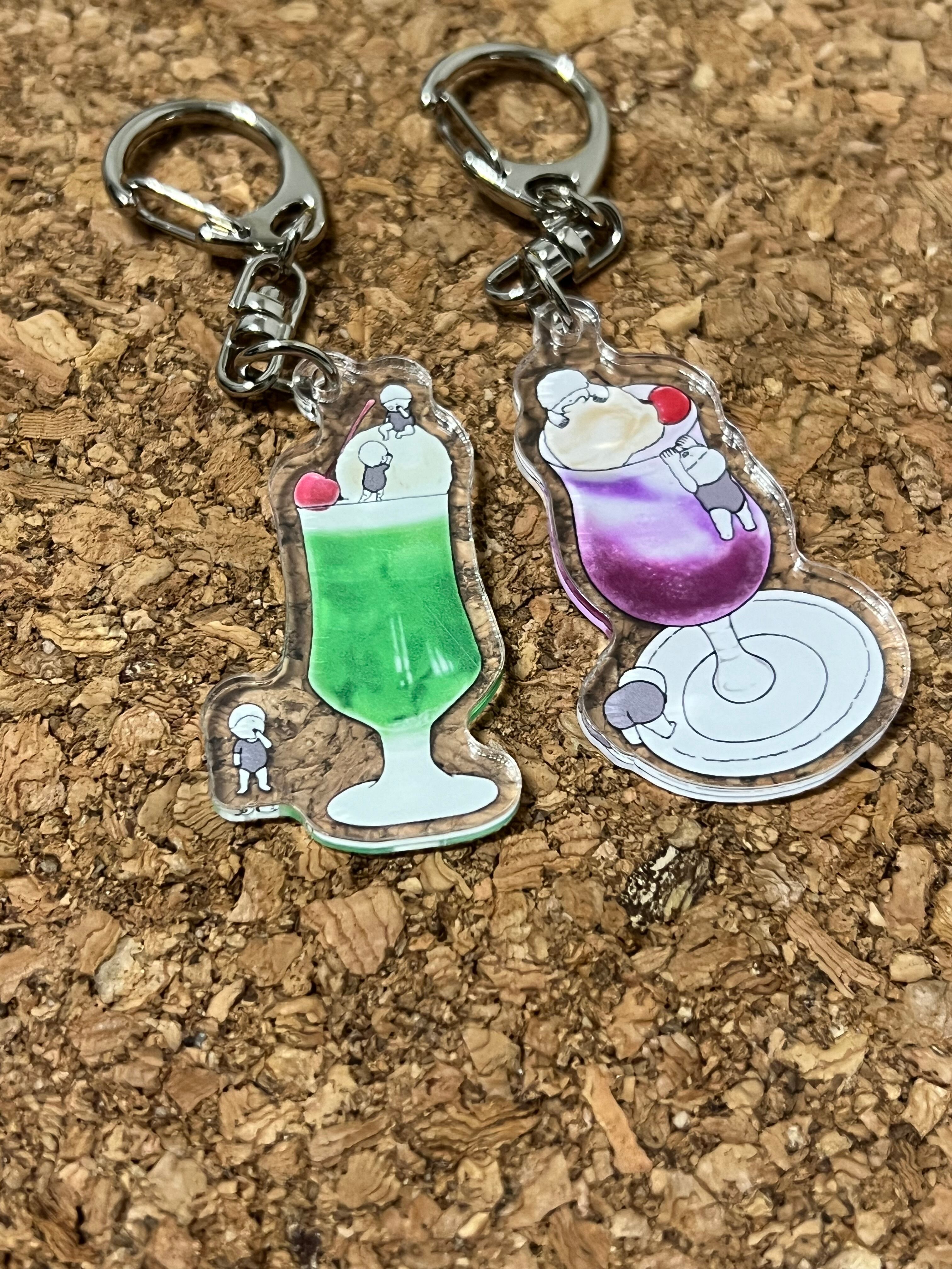 新作のクリームソーダ2種と犬のアクリルキーホルダーです!
